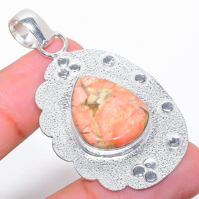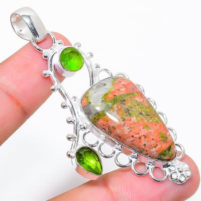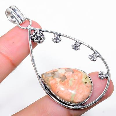 Unakite Gemstone 925 Silver Plated Handmade Jewelry Pendant 2.84"