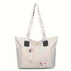 Bolsa tote com bordado de flores, bolsa de mão moderna em tecido Oxford, bolsa de ombro de grande capacidade para mulheres