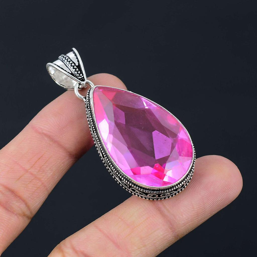 Pink Topaz Gemstone Pendant Solid 925 Sterling Silver Pendant Jewelry Gift For Unisex LG-040