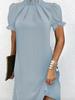 Vestidos de verão com manga curta e gola plissada, pulôver, cor sólida, solto, casual, feminino, elegante, para viagem, 5XL