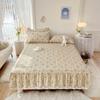 1pc puro algodão engrossado capa de colchão acolchoado com saia queen/king lençol saia elástico 200x220cm (Sem fronha)