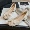 Sapatos Profissionais de Salto Grosso Mulheres Novos Sapatos Coreanos com Laço e Pérola Mulheres