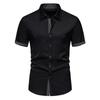 Camisa masculina de manga curta com gola virada para baixo e cor contrastante, camisa polo casual masculina para roupas masculinas