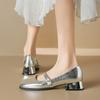 Sapatos de salto alto francês retrô prata Mary Jane femininos sapatos únicos de verão sapatos pequenos de couro pu salto grosso Zapatos De Mujer