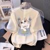Camiseta feminina de verão divertida Kawaii Cartoon Cats Print Harajuku High Street Casual Versátil Gola redonda Manga curta Tops