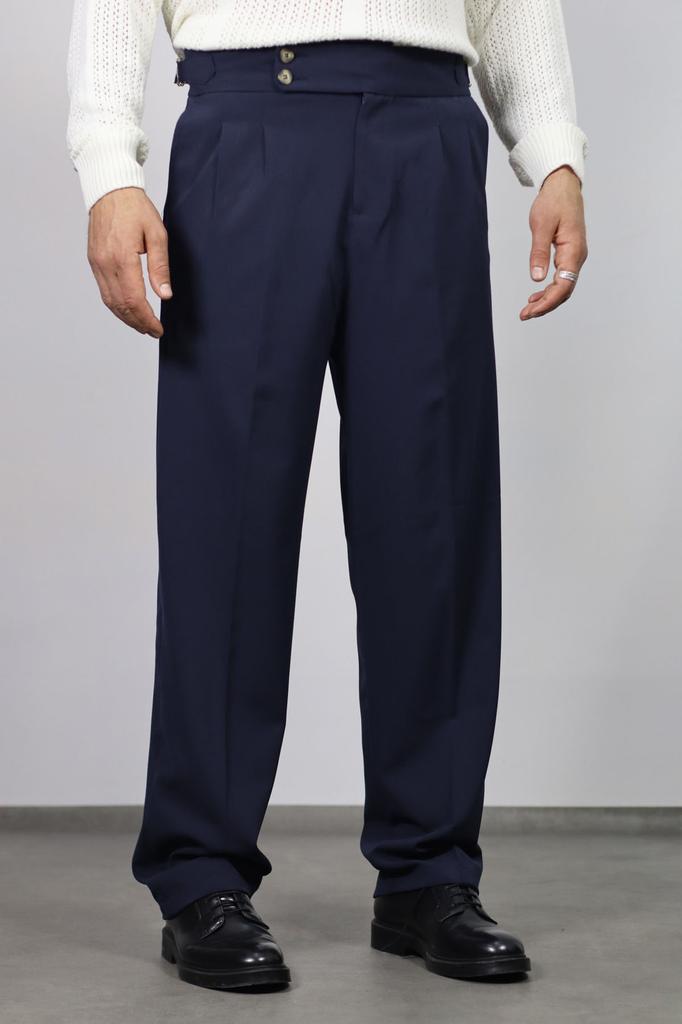 Calças largas masculinas italianas com pregas duplas