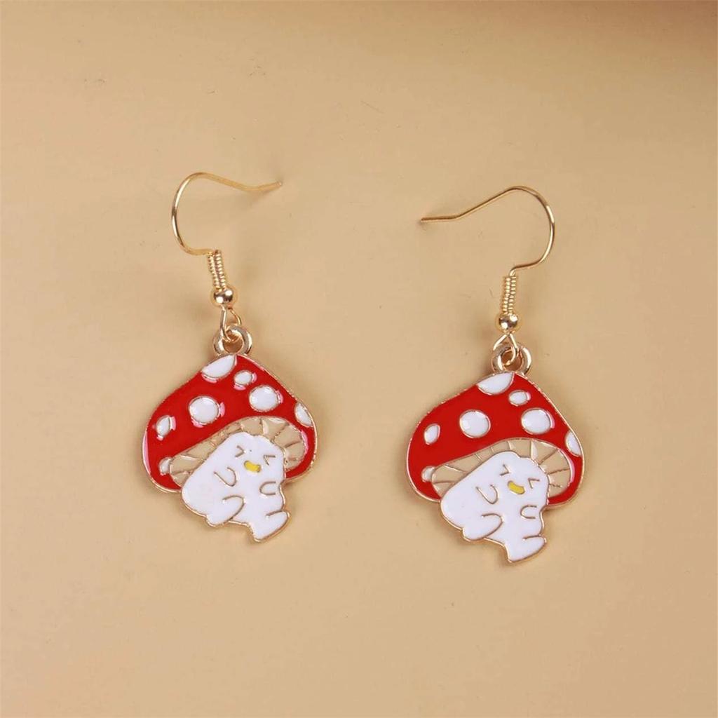 Cogumelos fofos de desenho animado, várias expressões de ação, ganchos de orelha, brincos novos criativos, acessórios divertidos de moda