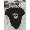 Moda Feminina Q-versão Coruja Estampa Camiseta Engraçada Casual O-pescoço Manga Curta Camiseta Verão Camiseta Feminina