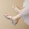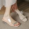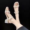 Sandálias de Salto Alto Grosso Duas -Vestir Verão Feminino Novos Sapatos de Salto Alto Com Pérolas e Bloco de Cores Chinelos Confortáveis