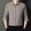 Camisa Masculina de Manga Comprida de Algodão e Linho Xadrez Casual com Bolso Real