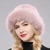 Novos chapéus de pele de coelho rex real para mulheres inverno com pele de raposa, chapéu de pele de inverno grosso e fofo e quente, boné feminino de malha 100% pele de coelho rex real