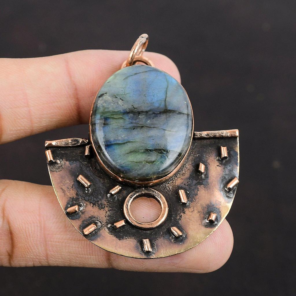 Pingente de cobre labradorita Um pingente de pedra preciosa de qualidade única Pingentes artesanais Jóias de cobre Pingente de declaração Presente de casamento Pingente novo em folha