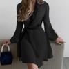 Primavera e outono lapela simples moda temperamento vestido feminino magro