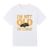 Men Black Print T-shirt Classic Car Vintage Style Pure Cotton No-Cut Transfer Print Cotton Tshirt