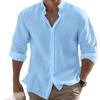 Camisas masculinas de manga comprida de linho de algodão verão cor sólida gola alta casual estilo praia tamanho grande