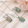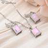 Moda Retângulo Gelo Crack Cristal Brincos Conjuntos de Jóias Para Mulheres Pingente Colar Cor Ouro Rosa