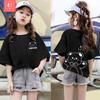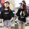 Camiseta de algodão de manga curta para meninas, maré de verão