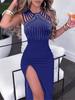 Vestidos femininos sem mangas bodycon com enfeites de strass brilhantes vestidos de coquetel para meninas