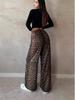 Melhore seu guarda-roupa com estas calças femininas estilosas com estampa de leopardo e pernas largas. Feitas de poliéster de alta qualidade, estas calças oferecem conforto e estilo moderno.