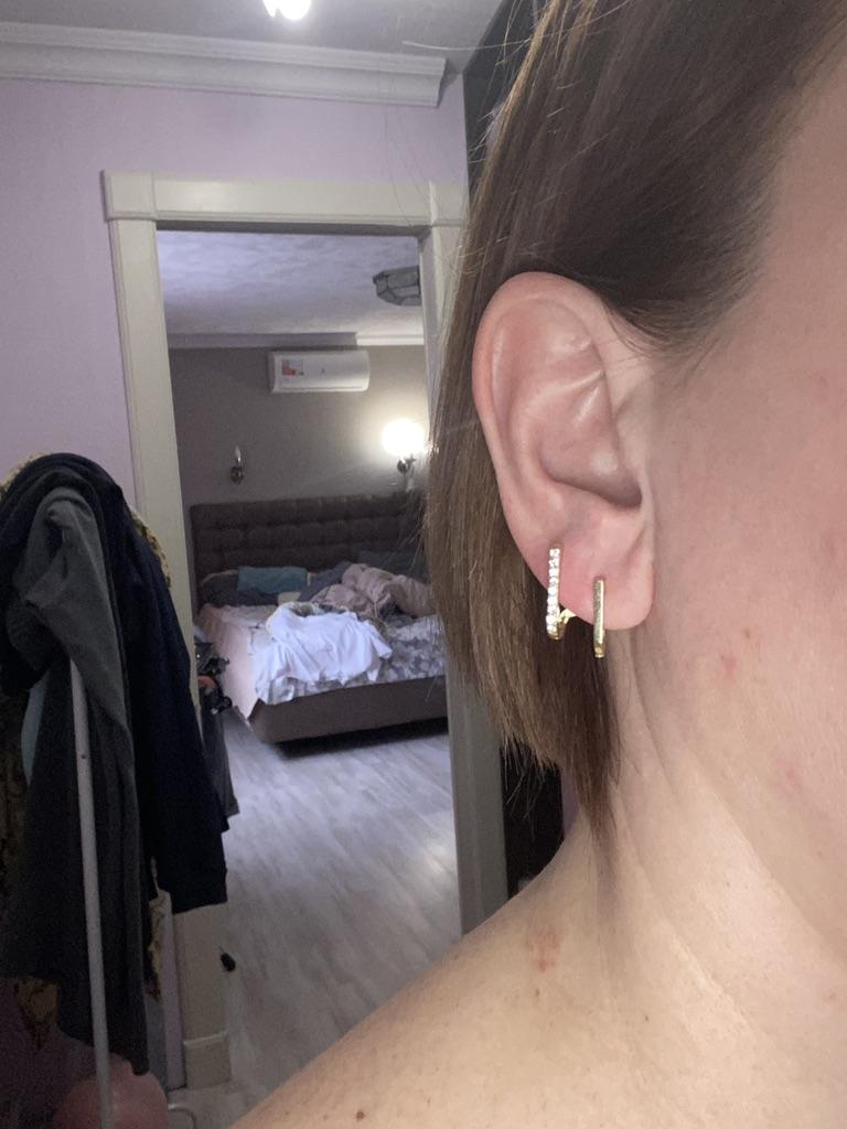 Muito fofos nos brincos de cravo. Parece prata, talvez seja.