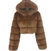 Este casaco é feito de material de peles falsas de alta qualidade, é muito macio, quente e confortável de usar.