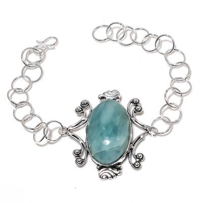 Pulseira de prata esterlina 925 feita à mão com pedra preciosa natural de água-marinha 7-8" j4G31