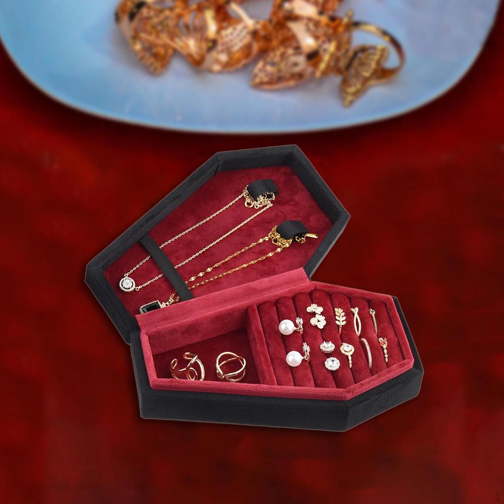 - 【desíounique】: Esta caixa de joias tipo caixão é uma caixa de joias exclusiva em estilo gótico, que não serve apenas como uma caixa de armazenamento de joias, mas também como uma peça de decoração única e atraente.