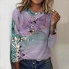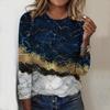 Tops para mulheres River Stripes Print Round Neck Manga comprida T-shirt Outono Casual Slim Pullover Feminino Manga comprida Top
