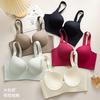Lindas roupas íntimas femininas com fivela frontal e traseira, seios pequenos, sem costura, sem anel de aço para fechar os seios, sutiã respirável fino