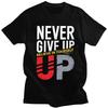 Camiseta gráfica masculina Never Give Up - Camiseta casual macia com estampa digital 3D ousada e slogan empoderador de manga curta