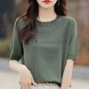 IHUASU Top feminino de verão com cor sólida e malha oca de seda gelada e manga curta