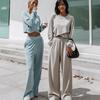Este terno feminino é uma adição versátil ao seu guarda-roupa. Feito de poliéster e elastano respirável, oferece conforto e estilo para as estações de primavera e outono. O ajuste regular valoriza sua silhueta, enquanto o top curto de mangas compridas e as calças largas proporcionam um visual casual, mas chique. A cintura elástica garante um ajuste confortável para vários formatos de corpo.