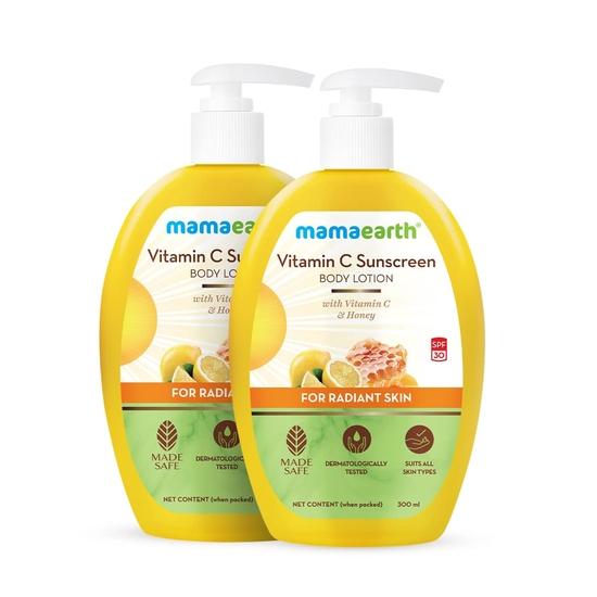 Mamaearth Loção Corporal Vitamina C Para Mulheres E Homens, Loção Corporal Para Pele Seca - Pacote Com 2 (400 ml * 2)