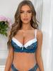 Sutiã Push Up de Renda Contrastante, Sutiã com Gravata Borboleta Colorblock Confortável e Elegante, Lingerie e Roupa Íntima Feminina