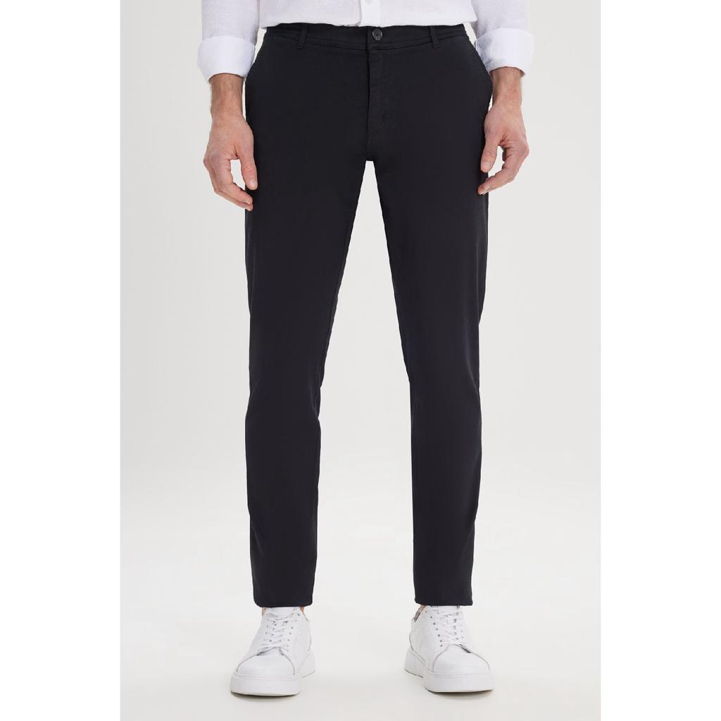 Calças Chino Slim Fit Masculinas de Lona Preta Slim Fit com Bolso Lateral