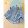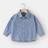 Jaqueta jeans listrada com lapela de outono infantil para meninos e meninas, blusa de algodão com botões simples e patchwork