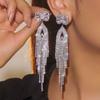 Europe And The United States Style Shiny Rhinestone Bow Shape Earrings Tassel Long Earrings Female Senior Sense Of Temperament Earrings 1 Pair