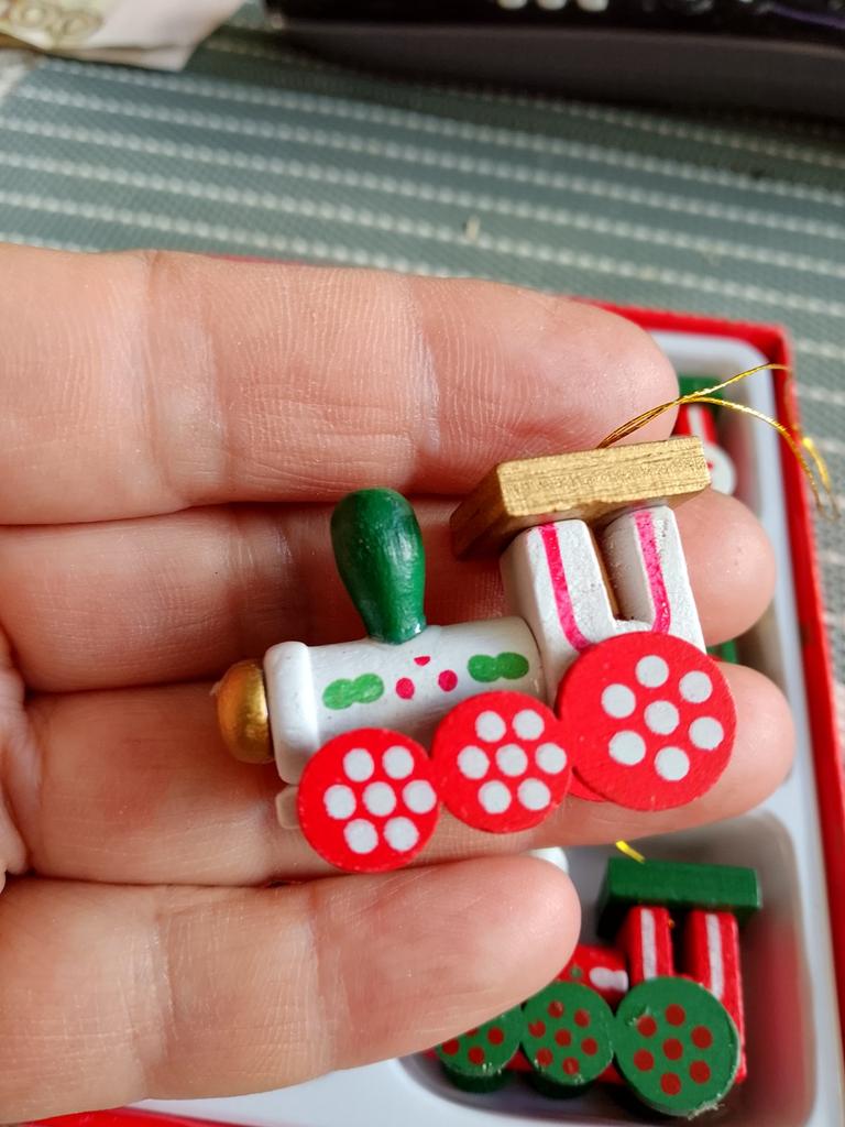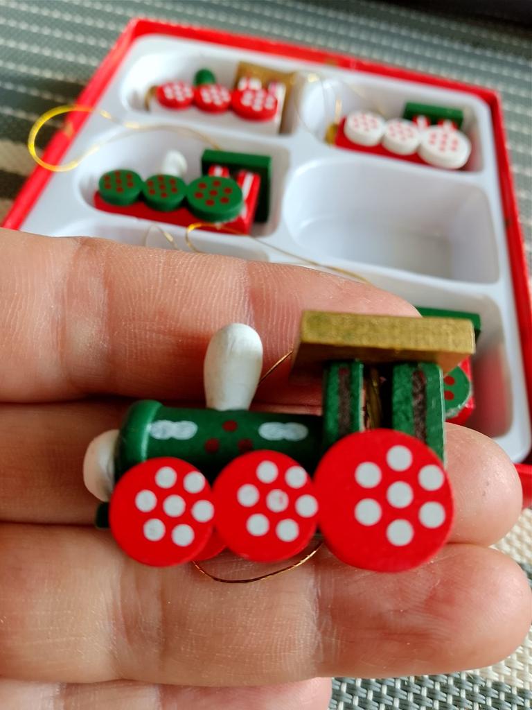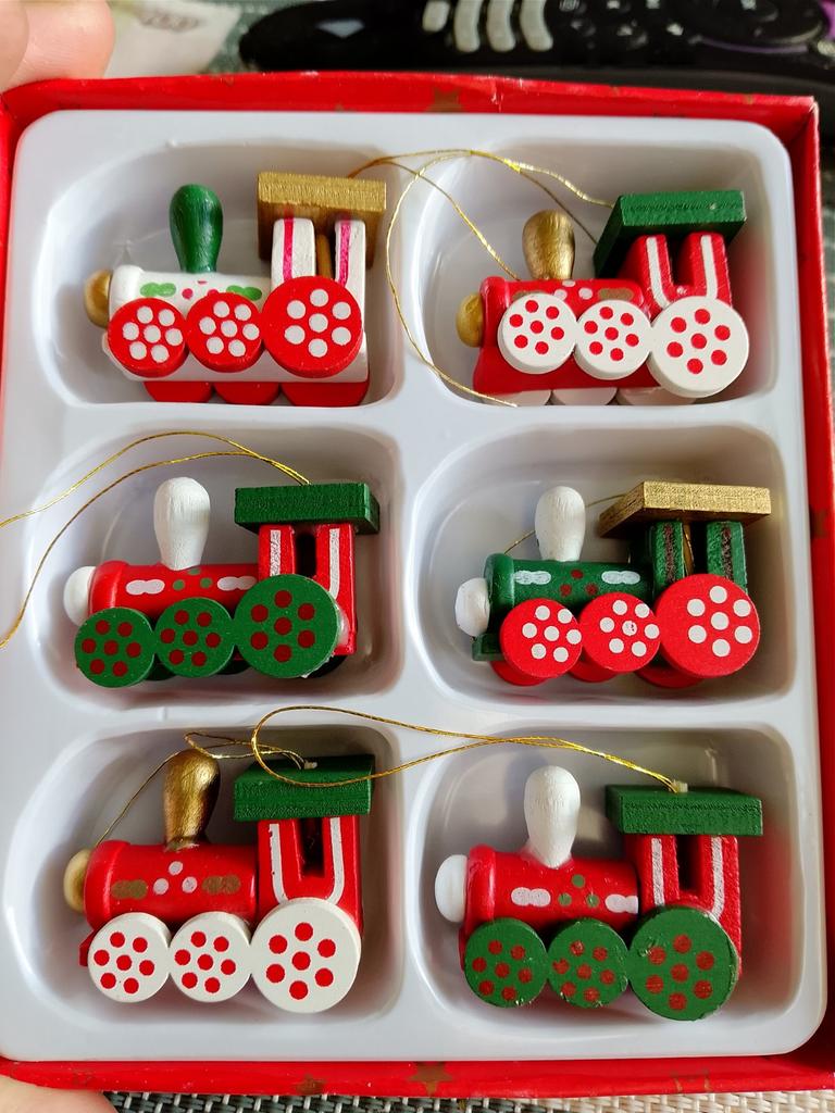 Caixa de presente de pingente de Natal de madeira com presentes de Natal, trem de presentes, decorações penduradas, decorações para árvores de Natal