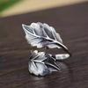 New Retro Personality Fashion 925 Sterling Silver Jewelry Atmosphere Vintage Feather Leaf Opening Rings R244