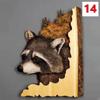 Nova escultura de parede plana de animal artesanal, guaxinim de madeira, urso, veado, lobo, raposa, decoração pintada à mão para casa, sala de estar