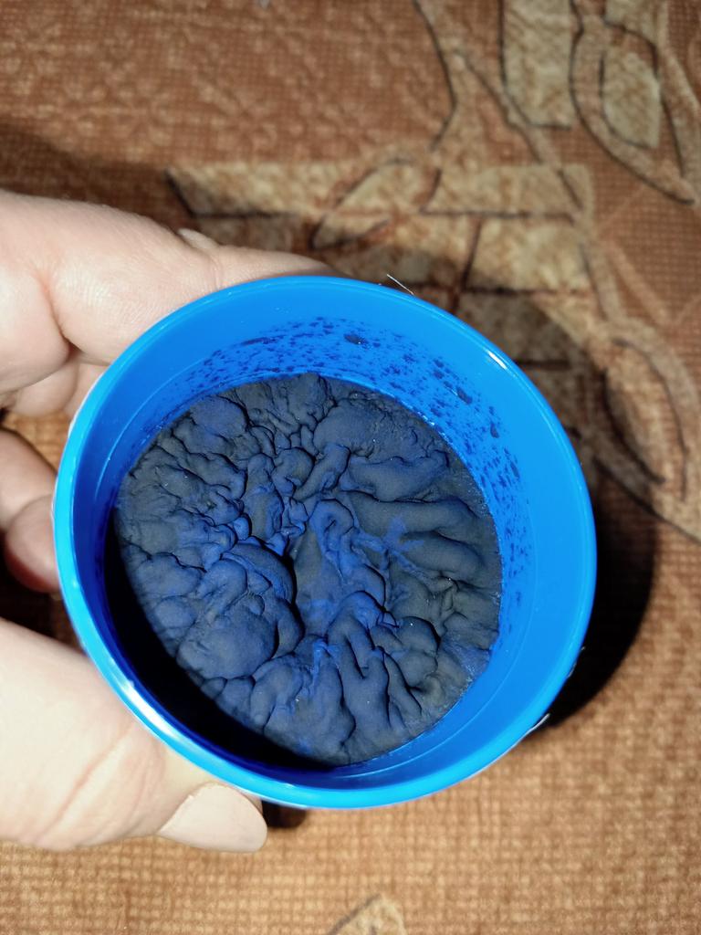 A primeira descarga foi marrom, a próxima ficou azul. Fácil de abrir, pode ser usado para limpar pastilhas.