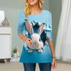 Plus Size Women Flower Broken Wall Rabbit Print Round Neck Casual Loose Long Sleeve Top