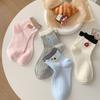 Meias Chinelos de Cor Sólida Mulheres Desenho Animado Bordado Japonês Kawaii Bonito Baixo Bonito Meias de Algodão Respirável Invisível Meias Invisíveis