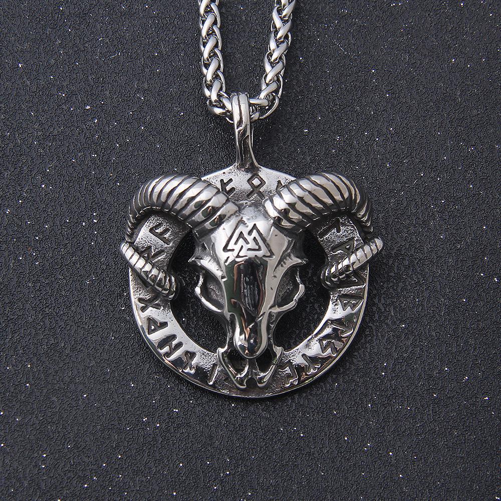 Features: Highly detailed 3D ram head, symbolic pentagram design, non-tarnish and skin-friendly material, mystical sigil inscriptions.