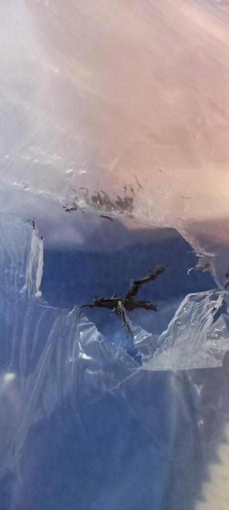 O conjunto é bonito, mas a blusa tem ou sujeira ou o tecido está estragado com alguma coisa. A sensação é que há uma pessoa que estraga as coisas intencionalmente. Não é a primeira vez que recebo coisas estragadas. A embalagem parece derretida. Há fotos.