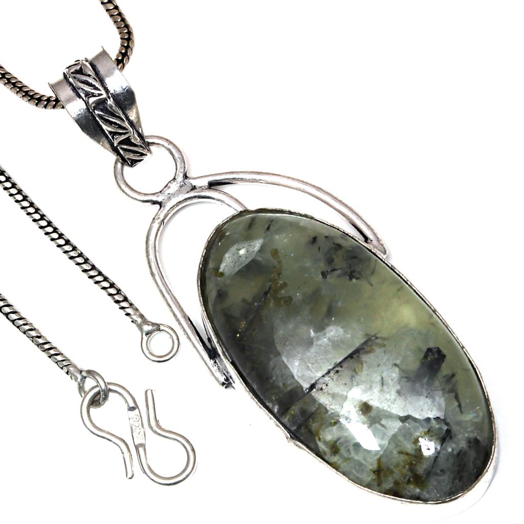 Pendant Prehnite Marlene Gemstone Valentine'Day Ethnic Silver Jewelry 2"