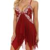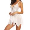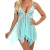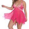 Plus Size Women's Floral Embroidered Babydoll Dress - Exotic Lingerie with Split Asymmetric Hem, Thong, and Delicate Details