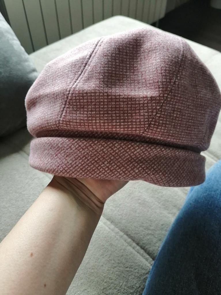 A boina é um pouco grande. Preciso pensar em algo. O tecido é agradável.