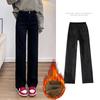 Jeans de Veludo Grosso de Inverno para Mulheres Soltos Retrô Retos Quentes Macios com Forro de Lã Elásticos de Cintura Alta Calças Femininas