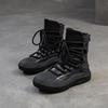Johnature Botas retrô de cano médio com sola grossa e couro legítimo com cadarço, sapatos femininos